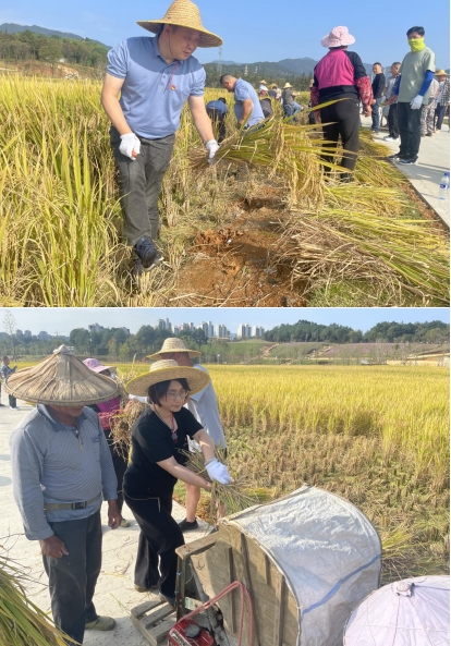 秋意漸寒,稻谷飄香。為深入貫徹習(xí)近平總書記關(guān)于實施鄉(xiāng)村振興戰(zhàn)略和糧食安全的重要論述,以學(xué)促干,推動學(xué)習(xí)貫徹習(xí)近平新時代中國特色社會主義思想主題教育見行見效,2023年117上午,市政集團(tuán)黨支部組織全體黨員干部龍州濕地項目開展“傳承蘇區(qū)好作風(fēng) 四下基層促發(fā)展”主題黨日活動,全面助力稻谷收割工作