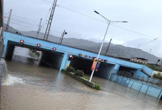 經過現場察看,由于短時間降雨量太大,龍津河水位暴漲高于通道出口頂標高,河水倒灌至下穿通道導致交通中斷,下穿通道水泵房三臺水泵全部啟動抽水也無法滿足排水要求。公司防汛小組到達現場后,連夜組織人員拉好警戒線,設置警示標志,防止車輛進入下穿通道,并調度4輛應急車輛及時排水并清洗路面;同時,提前與鐵路部門、交警部門聯系,暫時封閉該段線路。經過6小時的不斷抽水,路面已基本暢通,搶險過程未發生任何險情和人員傷亡。