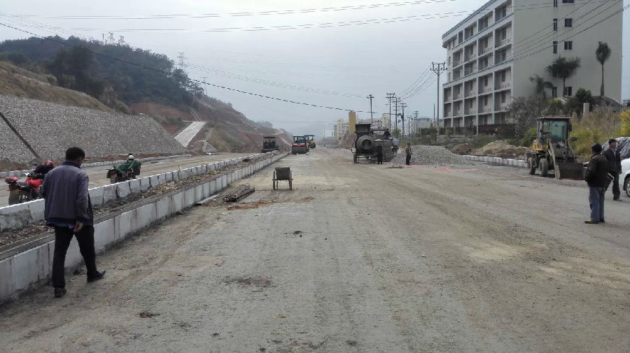 項目情況:項目起點與青竹路相接,終點與已建成的北三環路(福建龍州工業園區段)相連,全長2700米,寬40米,概算投資20640萬元,分兩個道路施工標段和一個高邊坡防護施工標,于2013年10月8日開工建設。目前已完成土石方90萬方,約占總量的92%,雨污水管道2100米,約占總量的80%,路基成型1820米,總計完成投資14000萬元(含拆遷)。目前已開始部分路段路面結構層施工