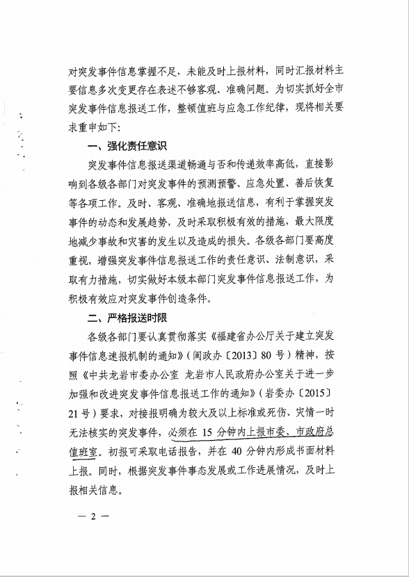 市政府辦關于切實抓好突發(fā)事件信息報送工作的通知(龍政辦【2017】100號)