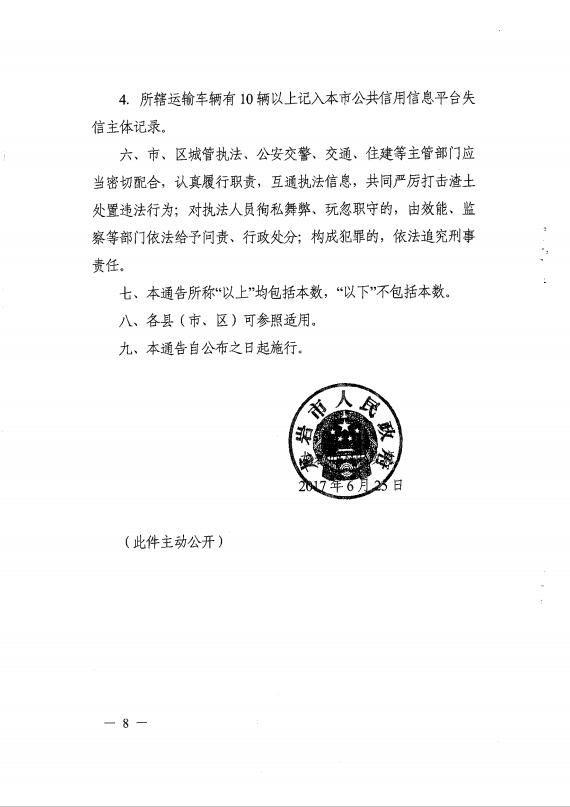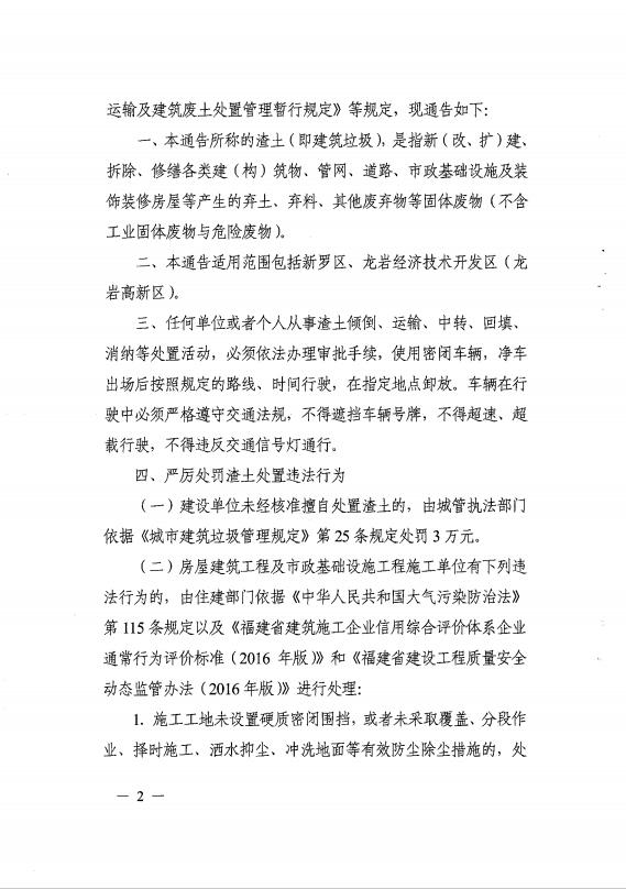 龍巖市人民政府關(guān)于嚴厲打擊渣土處置違法行為的通告(通告【2017】3號)