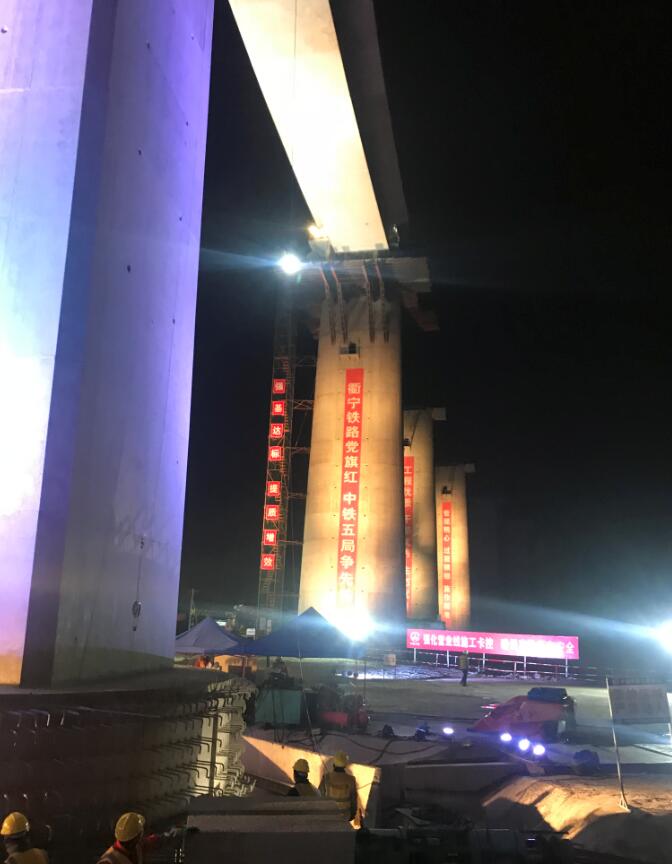 11日晚22:00,現場總指揮一聲令下轉體開始,T構按照1°/分鐘的速度勻速轉動,轉體行程剩余30cm時,橋上觀測人員先對橋梁的水平標高進行觀測,通知下方人員進行水平調整,再對中線觀測,最后的30cm采用點動,避免過轉確保中軸線誤差不超過設計要求,橋身轉體實現“華麗轉身”,共歷時約70分。
