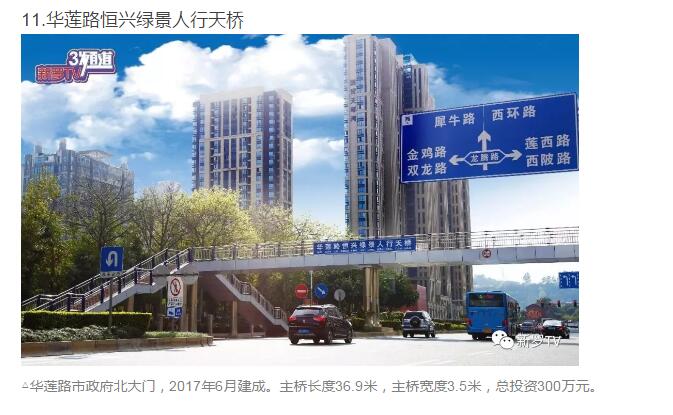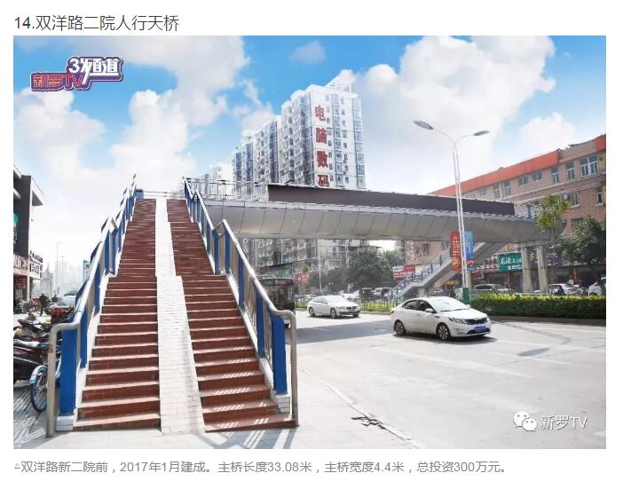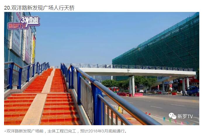 年來,市委、市政府加大市政基礎設施投入,大力推進人行天橋建設。截止2017年底中心城市共興建20余座人行天橋。