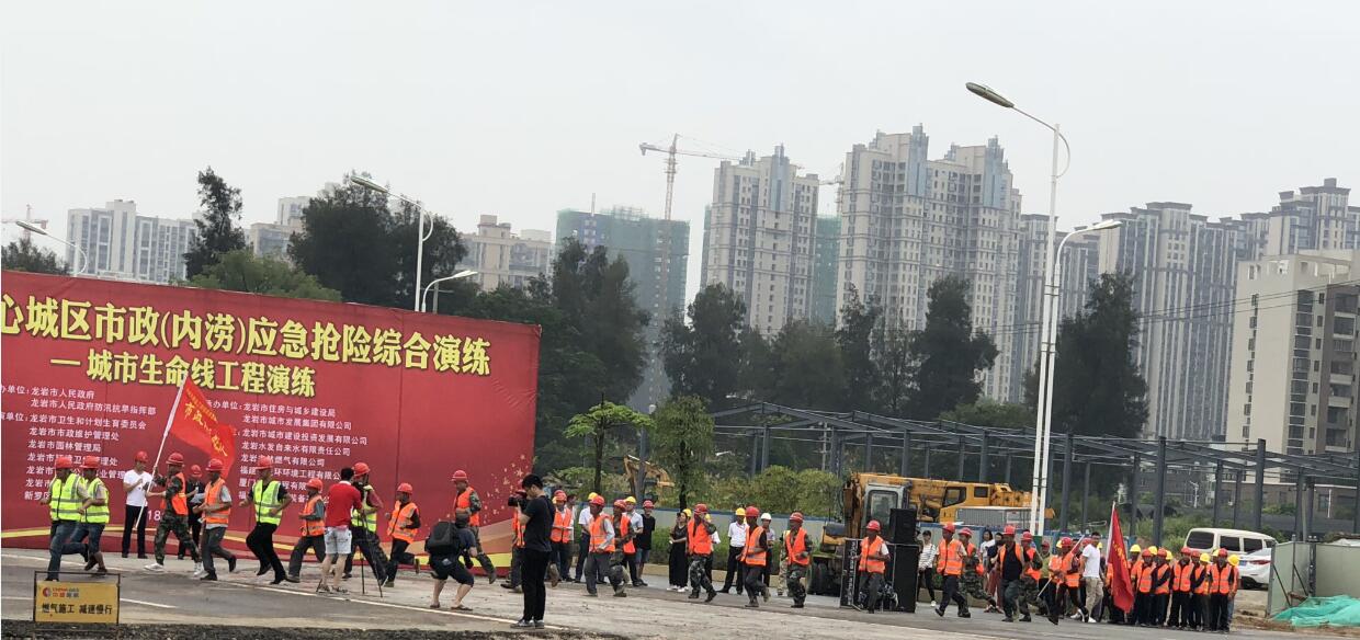 龍巖大道與工業(yè)路交叉口立交工程開展市政(內澇)應急搶險綜合演練