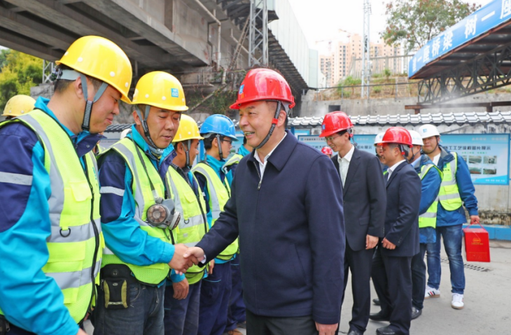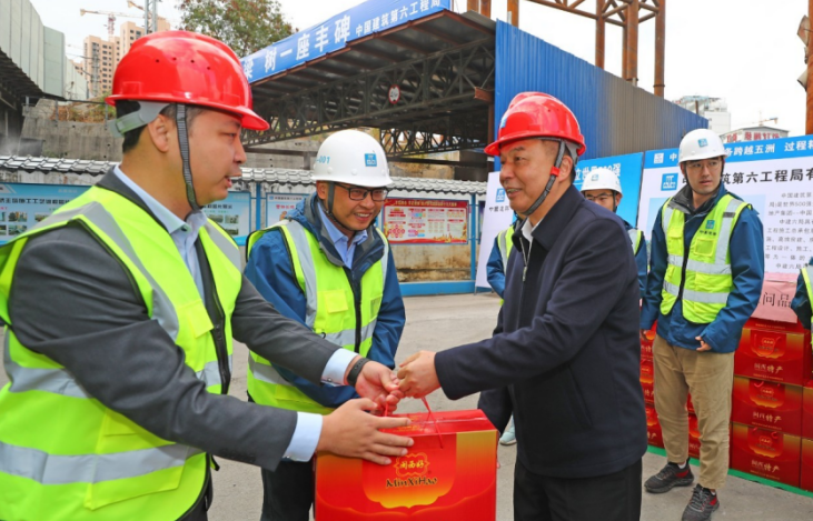 1月7日上午8時,市領導許維澤、陳廈生、黃慶輝來到龍巖大橋項目現場,了解建設情況,慰問一線工人。許書記首先詳細了解項目建設進展情況,并對龍巖大橋主塔順利封頂表示祝賀。同時,許書記為一線工人送上2020年“兩節”送溫暖慰問金3萬元和節日慰問品。